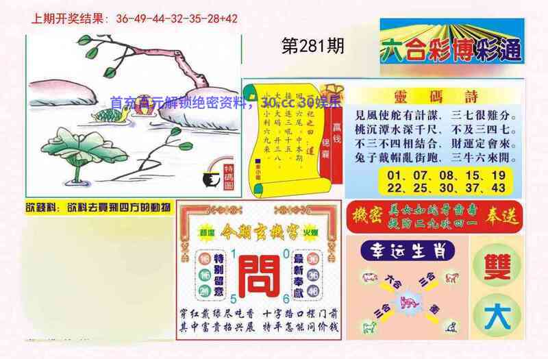 281期:无敌七肖【兔蛇龙牛鼠虎】开:羊47准
