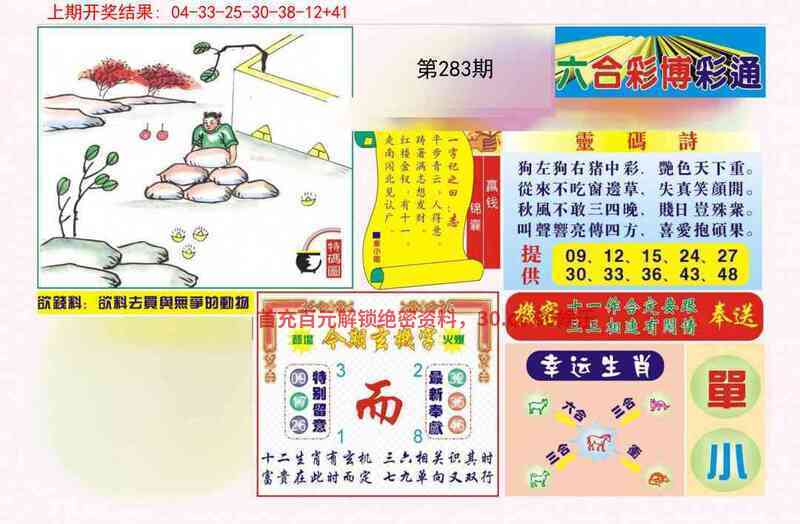 283期:无敌七肖【牛鸡猪羊猴狗鼠】开:發00准